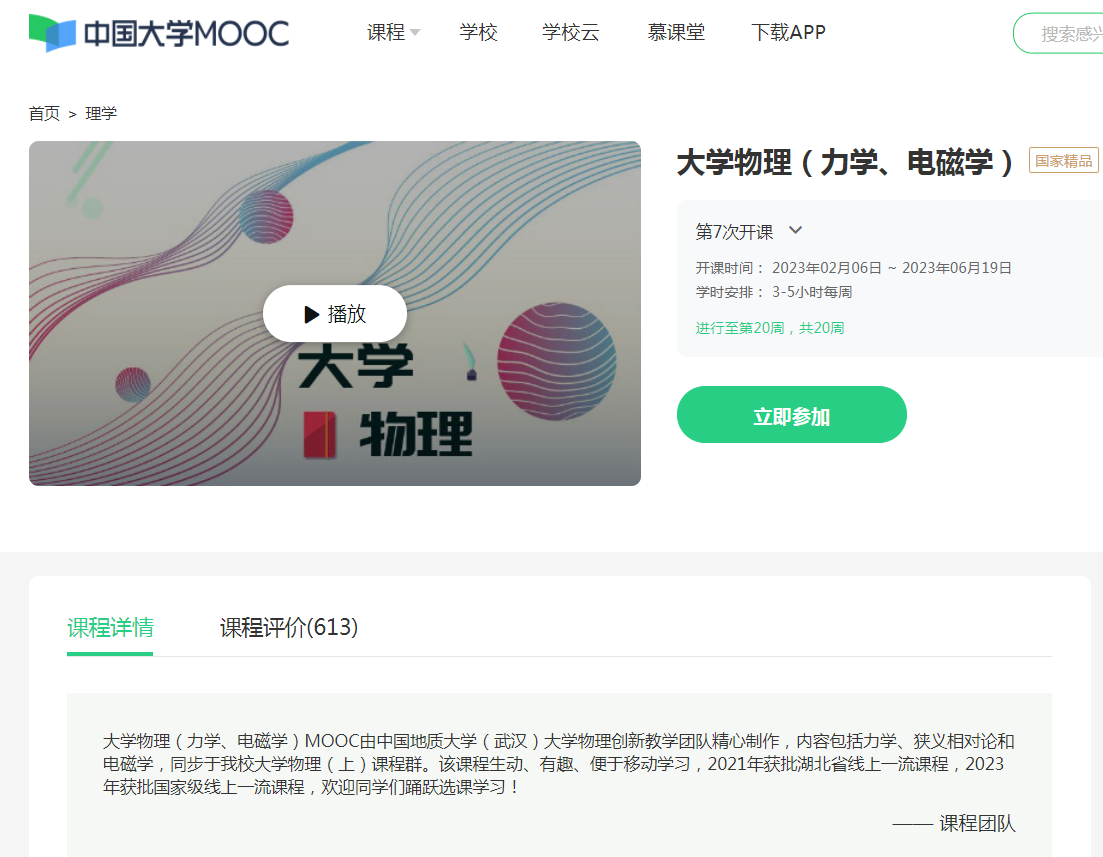 近日,教育部公示了第二批国家级一流本科课程认定结果,Betvictor中文版韩艳玲老师团队的大学物理(力学、电磁学)课程荣评第二批国家级线上一流本科课程。该课程从2018年大学物理(力学、电磁学)MOOC立项建设开始,项目负责人暨大学物理创新教学团队负责人韩艳玲老师通过组织教学部的老中青教师们一起“说课”,集体讨论,反复修改凝练,至今已成功开设了7期课程,为全国7万多名在线学习者提供了优质教育资源。