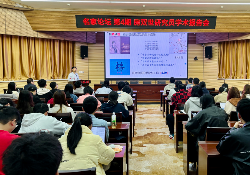 房双世研究员从朱熹的“格物致理”和屈原的《天问》等中国哲学史上重要的思想理论出发,引入了粒子物理的研究目标,即探索物质组成和运动的基本规律。从《庄子·天下》中提出的“一尺之锤,日取其半,万世不竭”,以及“馒头”还是“豆沙包”的故事出发,点明了物质内部结构对认识其本质的重要性,引出了对微观世界探索的渴望。