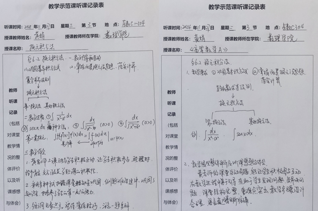 2024年11月27日,在大学数学教学部的组织下,高等数学课程组多名教师在东教楼C304现场观摩了黄娟老师的“高等数学A”课程公开课,并邀请教学督导贾洪彪教授进行了观摩指导。
